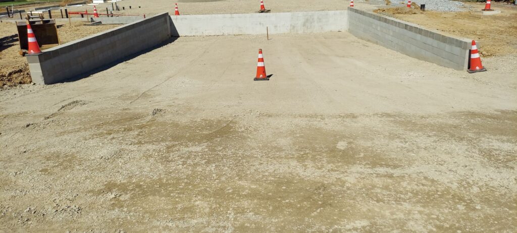 The new dual recessed loading dock is taking shape, and it’s designed with the scale of modern freight in mind. Capable of handling two full-size 18-wheeled Freightliners at once, the dock can easily accommodate trucks stretching over 80 feet long from cab to trailer. To support that capacity, the ramp has been cut and compacted to a footprint of 60 feet in length and 40 feet in width, giving ample room for maneuvering and staging.